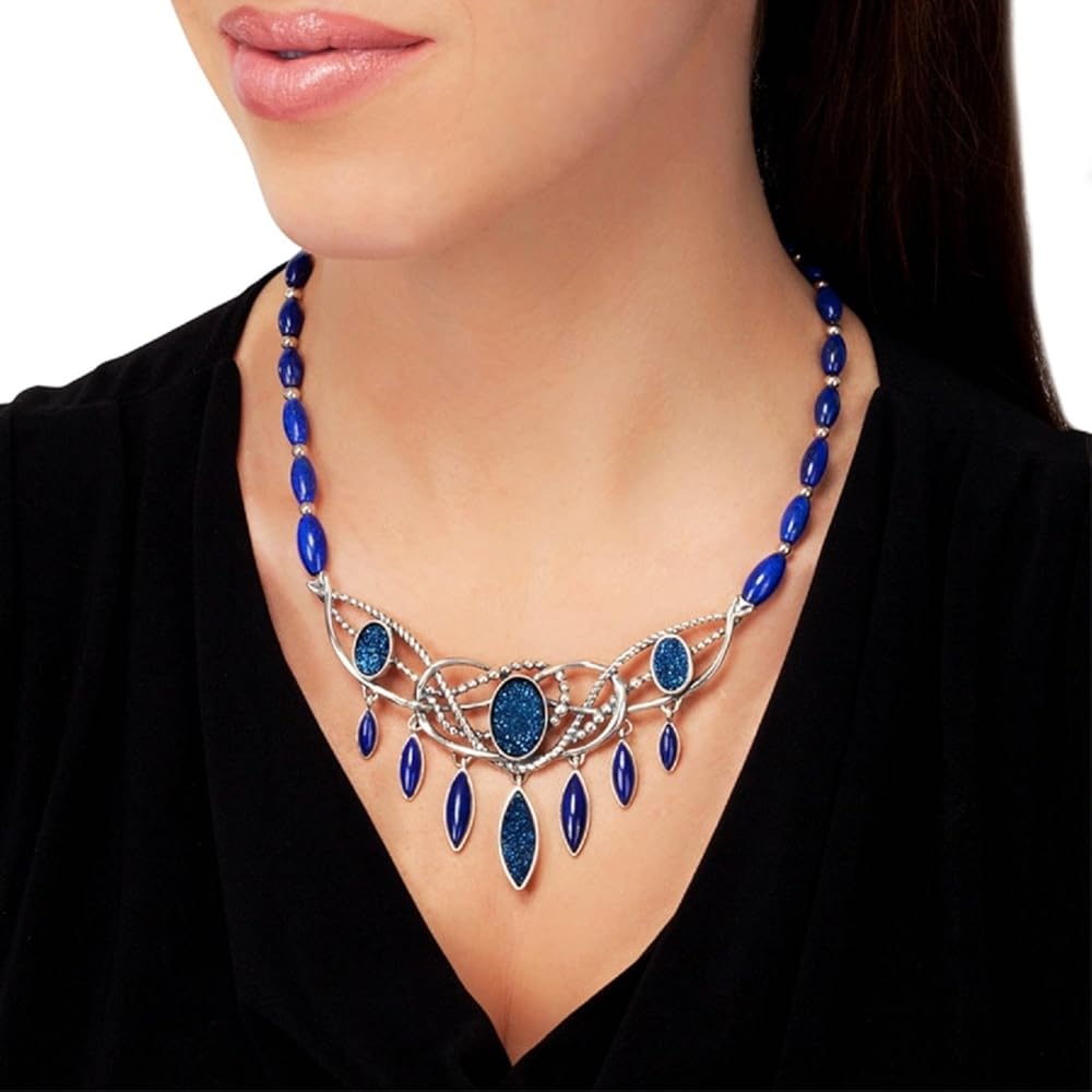 Carolyn Pollack “Relios” 925 Sterling Silver Lapis Druzy Statement Necklace