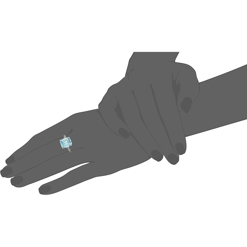 Modernize your look with this Crislu Cubic Zirconia ring. Crafted in platinum-plated sterling silver, the ring showcases a simulated aquamarine colored center cubic zirconia stone. The center stone is emerald-shape, weighs total 4 carats, and is accompanied by petite size, round cut Cubic-Zirconia stones that extend partially down each side of the band.