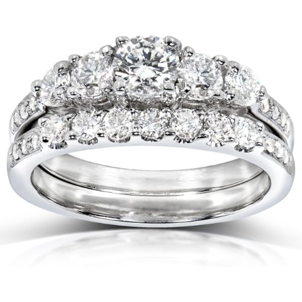 Kobelli 14k White Gold 1 cttw Diamond Engagement & Wedding Band Set