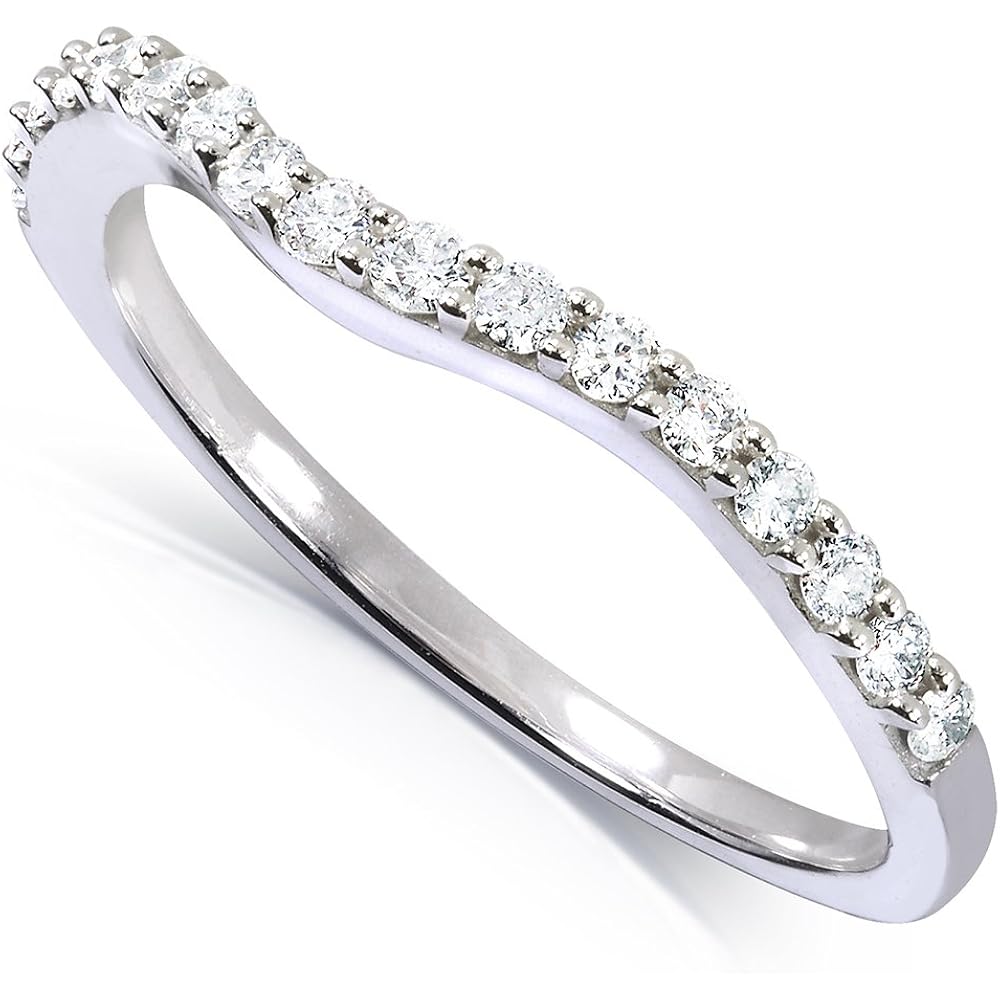 Kobelli 14K White Gold 1/4 cttw Round Diamond Curved Wedding Ring