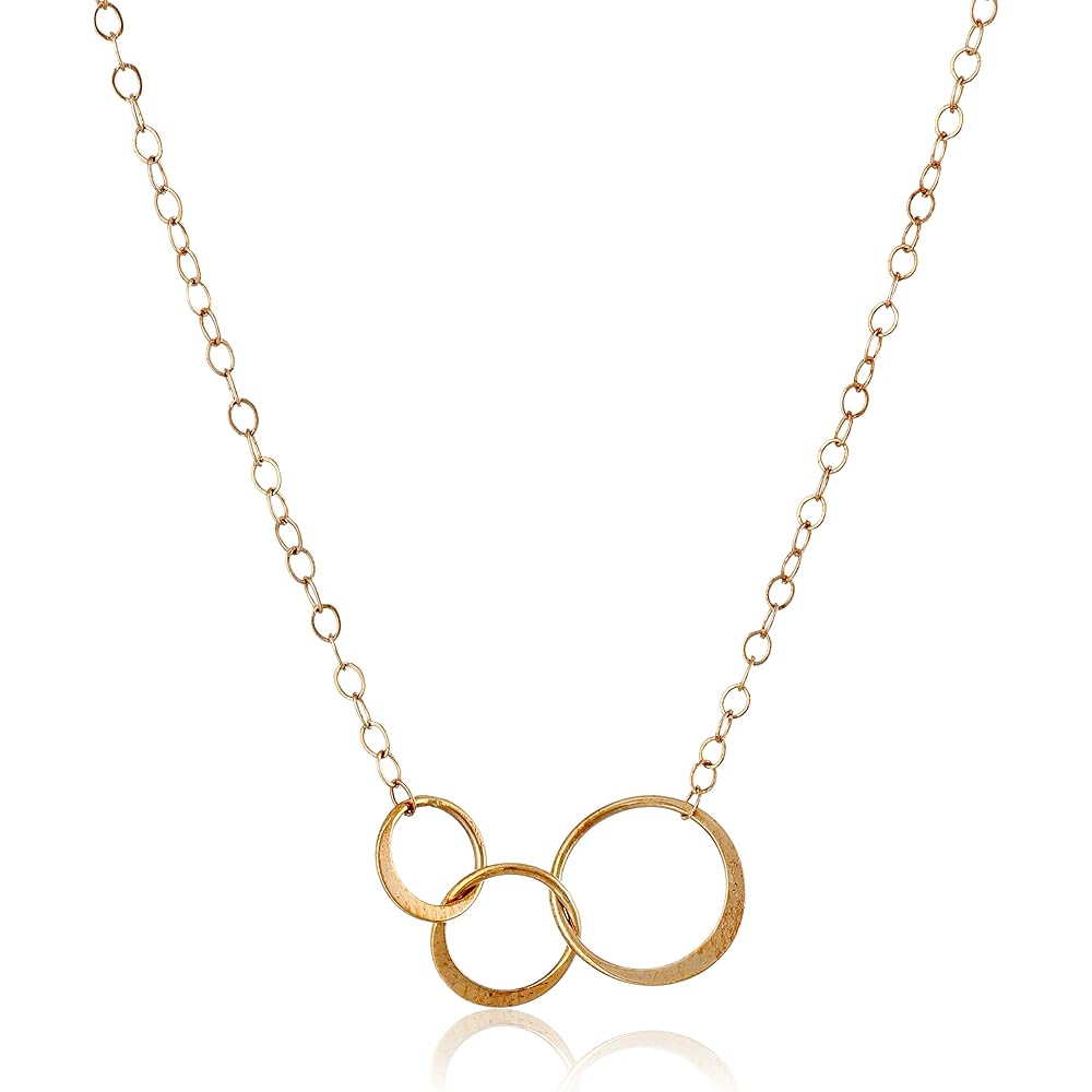 The dainty link chain features three off center 14k yellow gold hammered rings that increase in size. Each ring is hand created by the artist causing size and shape to vary slightly. The 16-inch link chain features an easy-hook clasp. Come out with price for $350.00, the total weight of this piece is 1.22 grams.