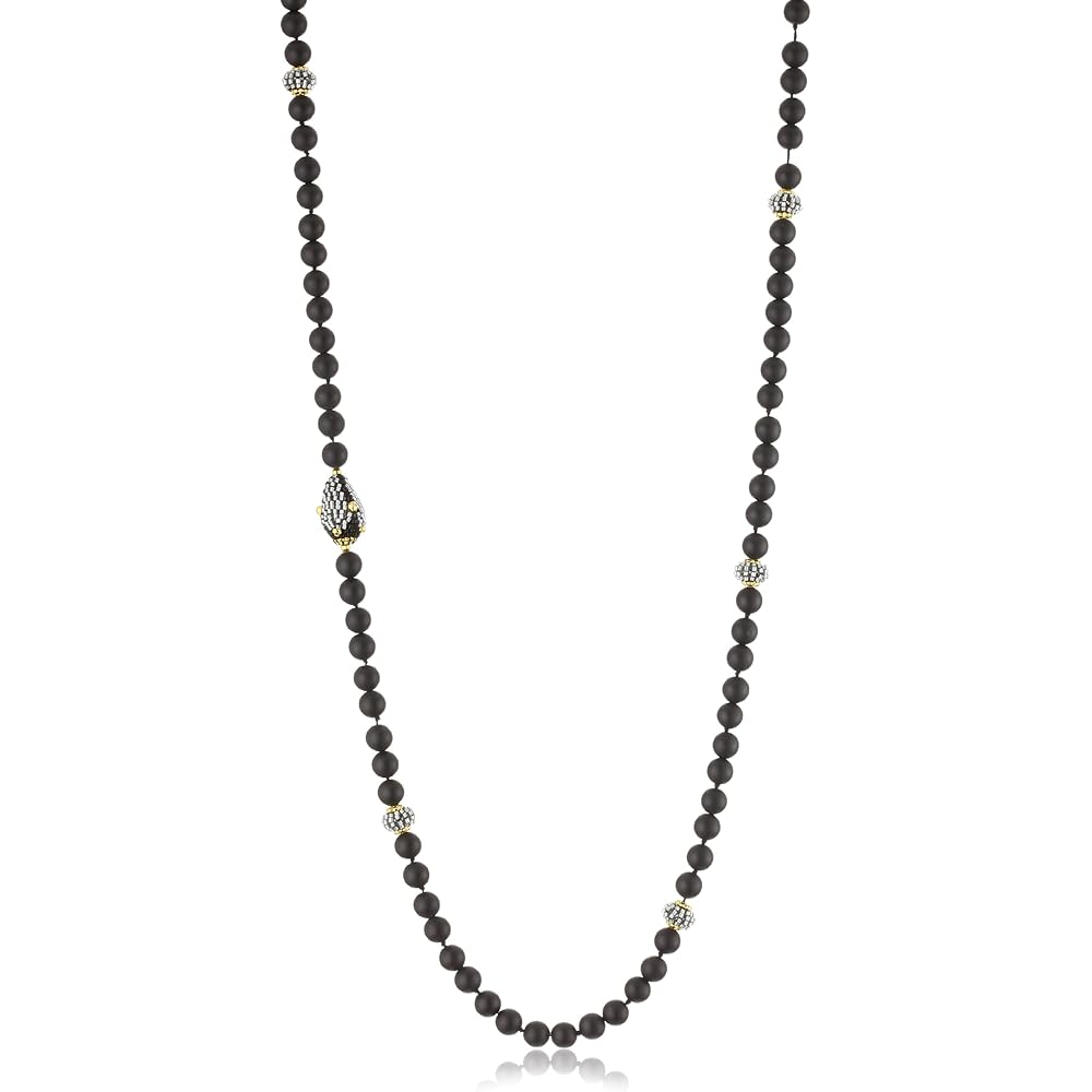 Shiny Onyx beads form necklace that’s perfect for wrapping, this Miguel Ases necklace features 94 stones of matte Onyx in strung setting. With 0.88 inches wide by 0.5 inches high, it makes its wearer feel effortlessly wonderful.