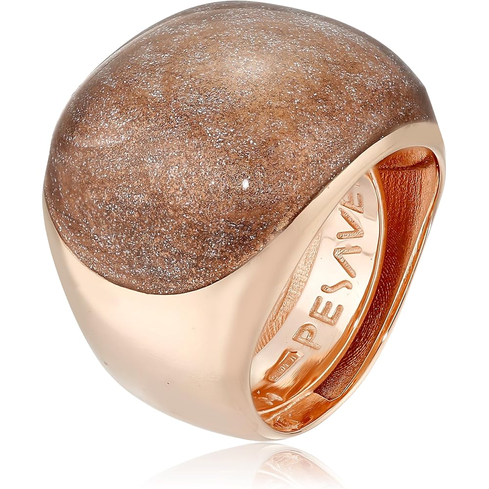 Representing “Polvere” ring, set in lustrous Rose Gold-plated Silver and adorned with large Pearled Enamel. Made with organic micro particles cut from nano-technology form hexagonal shapes to create its unique sparkled, shows this ring so distinctive!