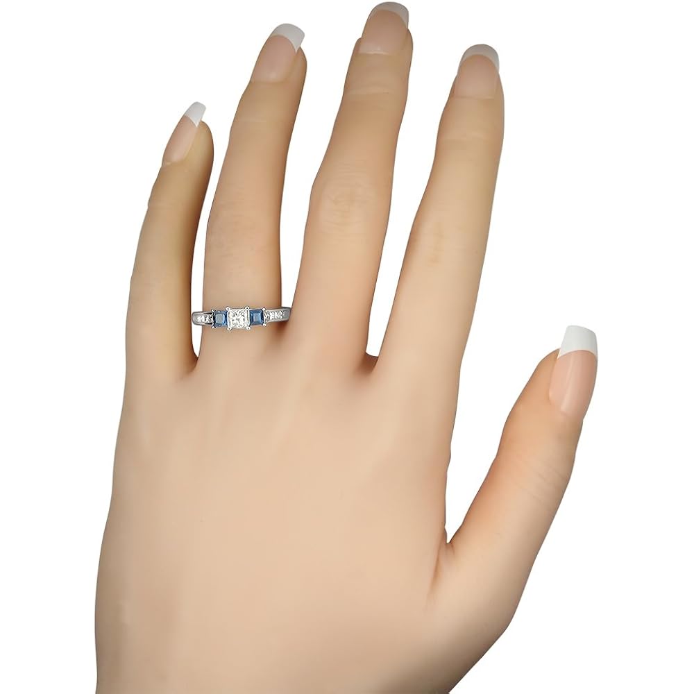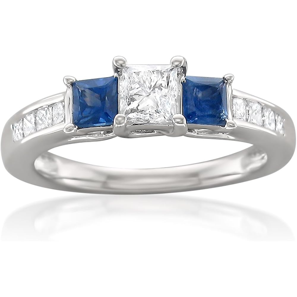 14k White Gold 1 1/7 cttw Princess-Cut Diamond & Sapphire Engagement Ring