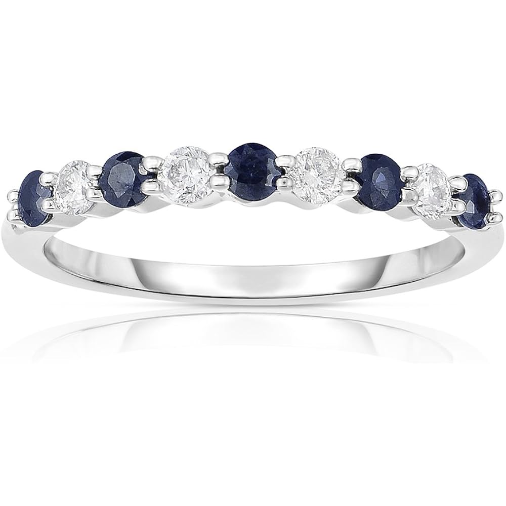 14k White Gold Diamond and Blue Sapphire Anniversary Ring Band