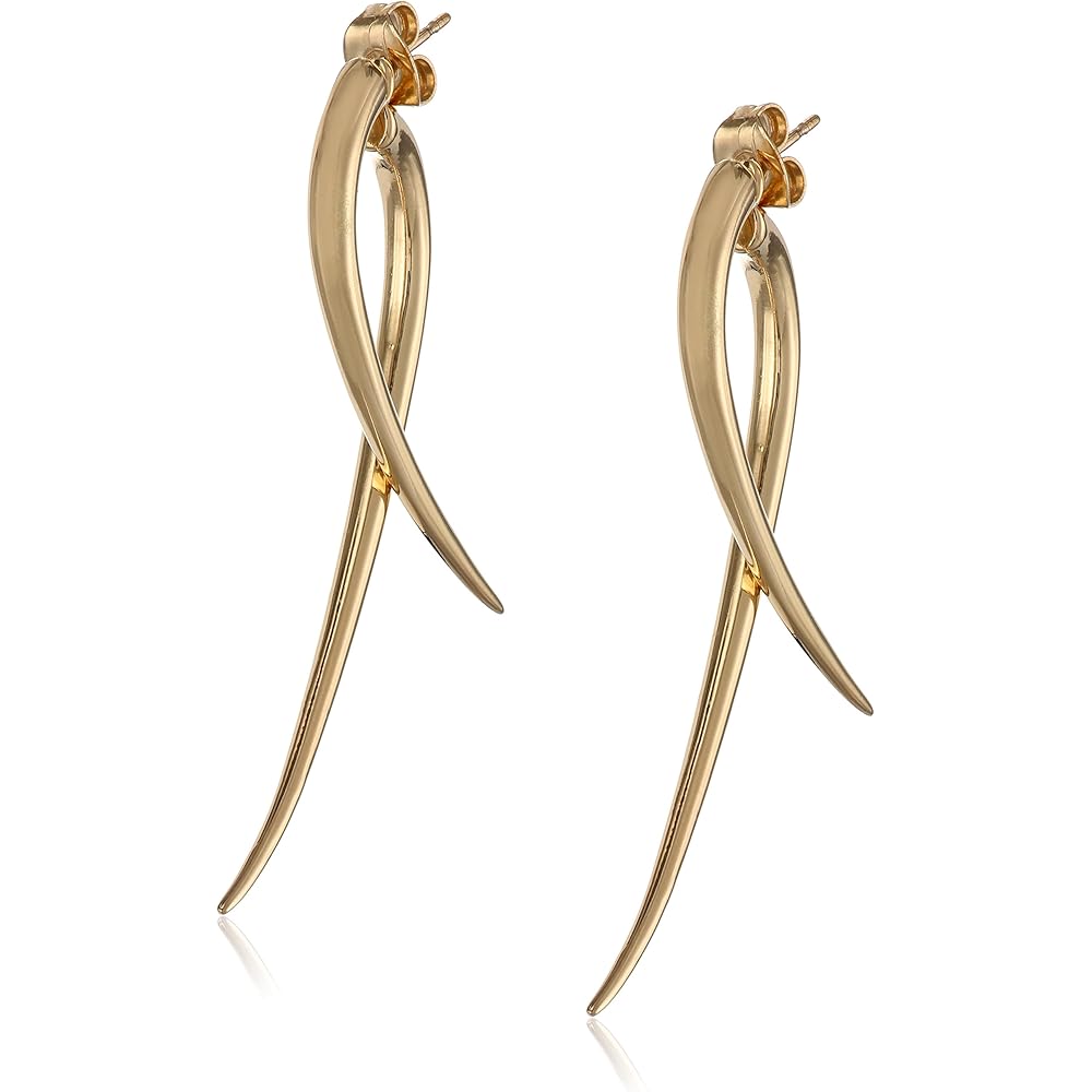 These delicate but edgy hoop earrings by Campbell has a talon on the front and the back that will follow your move. Featuring crisscross bands with pointed tips, this unique jewelry will not let your look get out of control.