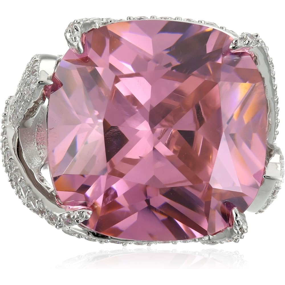 Charles Winston 925 Sterling Silver Cushion Pink Cubic-Zirconia Glamor Ring