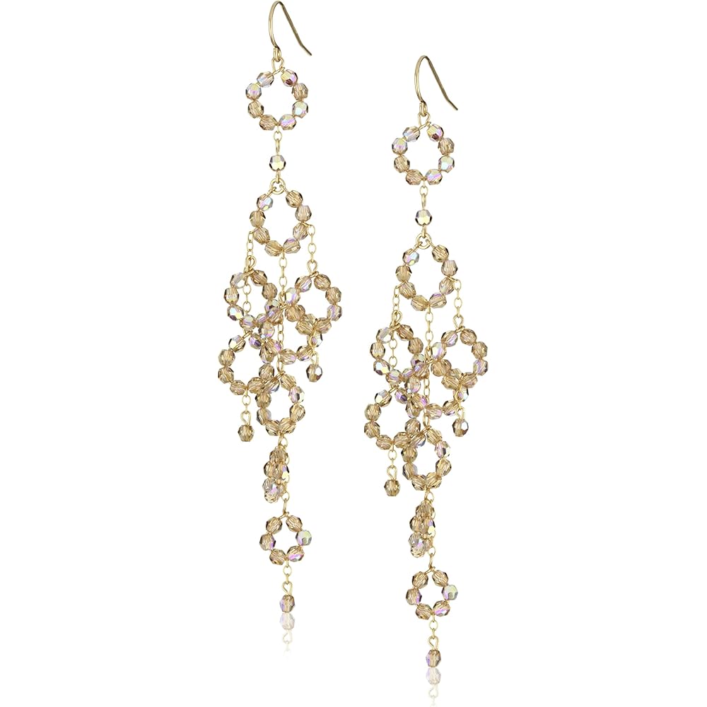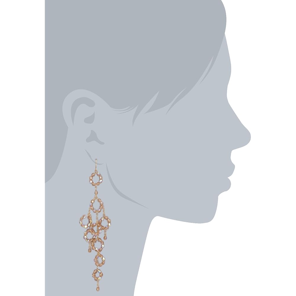 Part of “Classic” collection, each earring has ten free moving tiny dangling circles with iridescent champagne. These Jamie Kole chandeliers are lightweight, measuring 4 inches dropping by 1 inch wide. Traditional french wire will help to secure from earlobe.