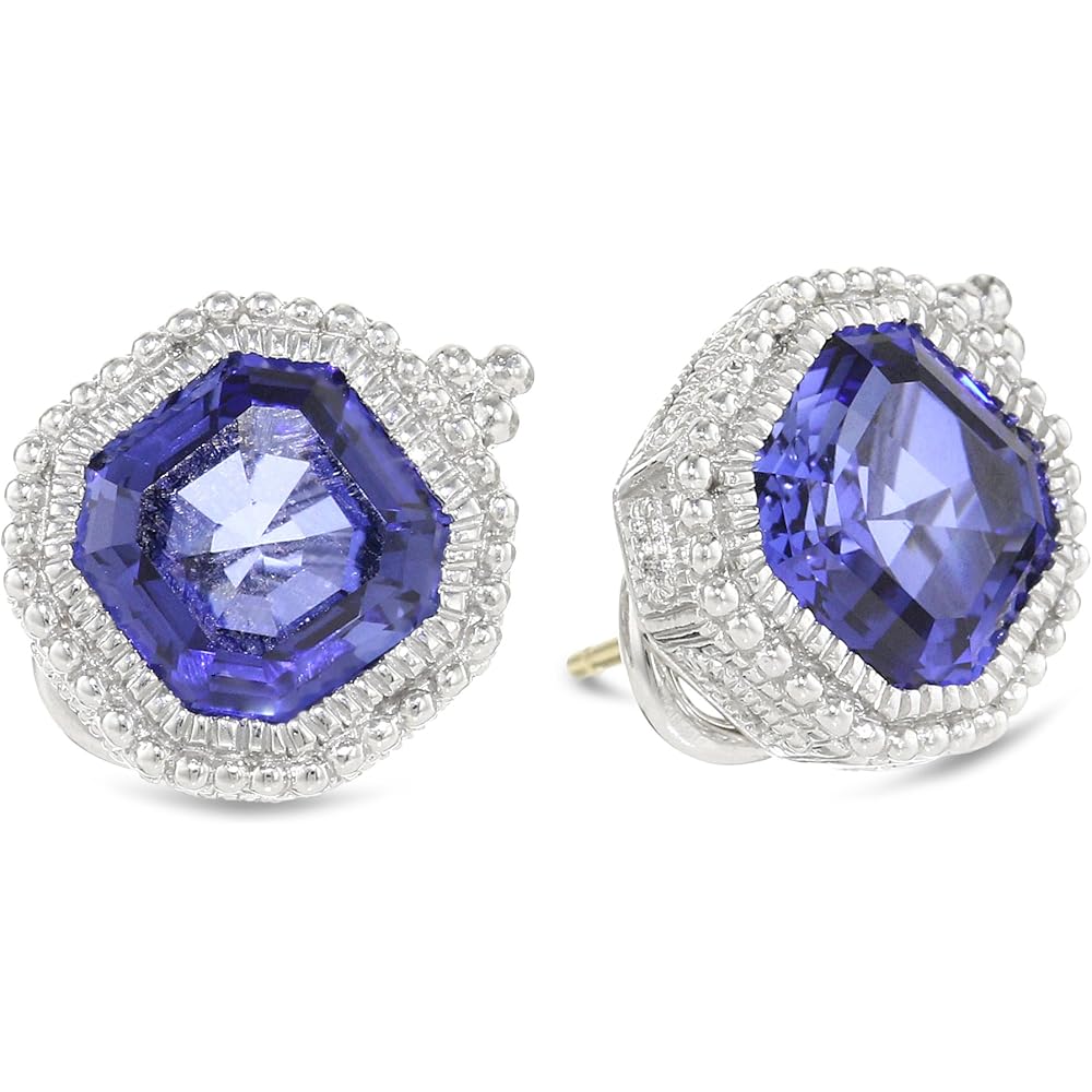 A little luxury you can indulge in every day. These very sweet Judith Ripka sapphire stud earrings have a timeless style that she will love. Each stud earrings is made entirely in rhodium-plated silver and features an asscher-cut blue sapphire stone that will add just the right pretty touch to her style.