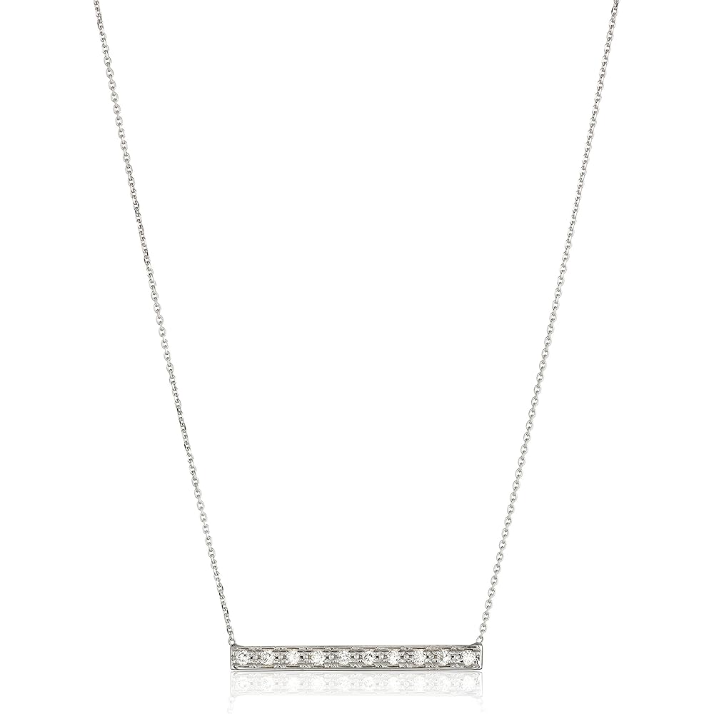 Make any any outfit stand out with this luxurious piece of fine jewelry as this stone-studded necklace features a straight, horizontal bar pendant individually bead-set with natural white diamonds and stylishly suspended from either ends of its thin yet elegant 14 karat white gold cable chain.