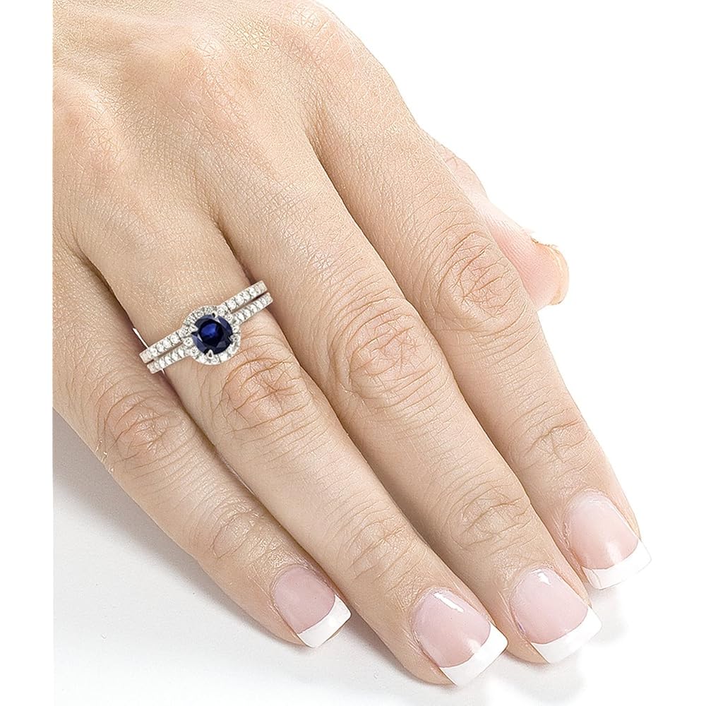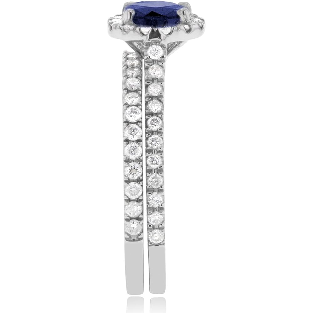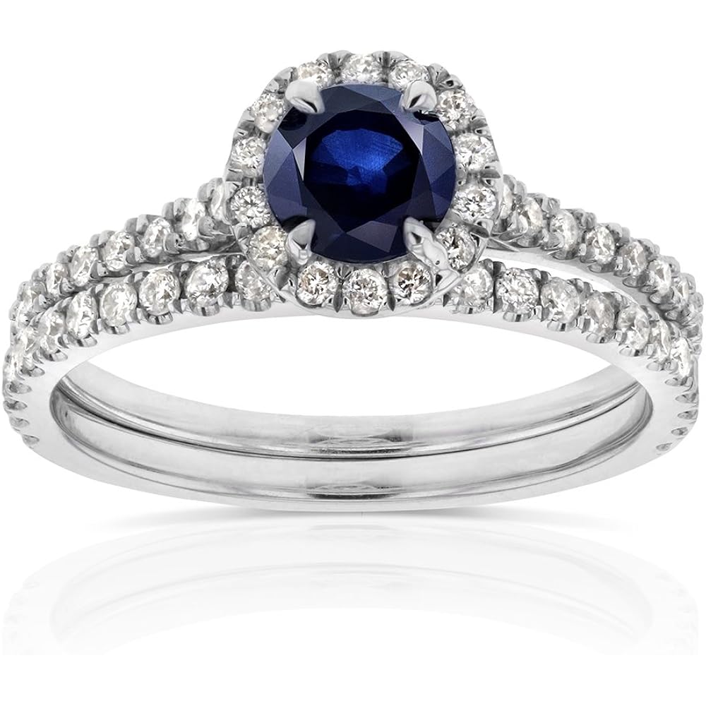Kobelli 14k White Gold Diamond and Sapphire Halo Wedding Ring Set