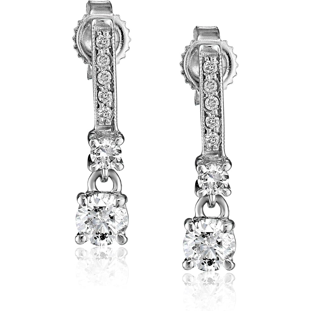 An instant classic from Kobelli with Diamond Dangle Earrings, set of 14K white gold, boast a look of stunning diamonds in a trend-savvy setting. Dangling over half an inch from, these earrings showcase a full look of diamonds trailing down the fabulous featured precious stone.