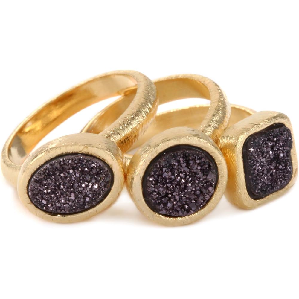 Marcia Moran “Midnight” 18k Gold-Plated Three Stackable Druzy Rings
