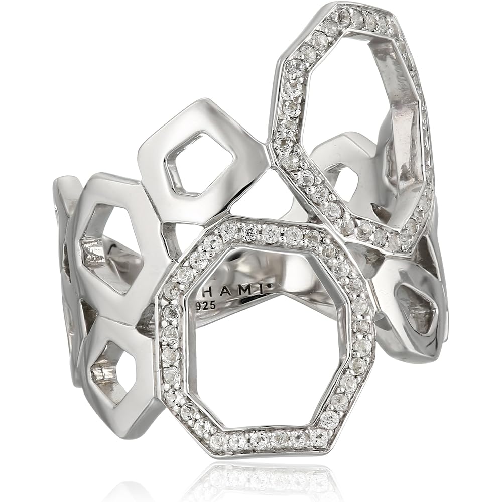 Ron Hami “Geo” 925 Sterling Silver White Topaz Geometry Hollow Ring