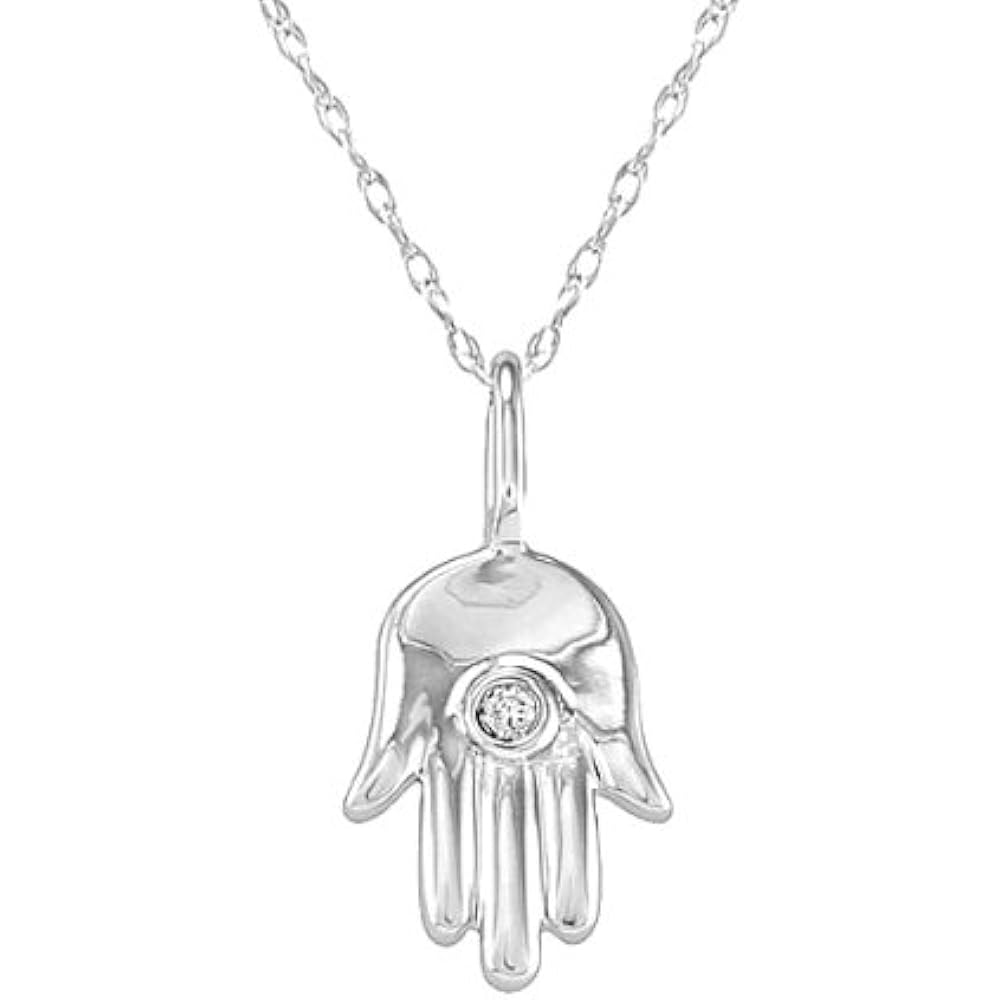 Kobelli 14K White Gold “Hamsa” Tiny Diamond Pendant Necklace