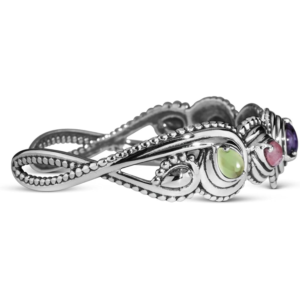 Fill your day with this sterling silver multi gemstones in multi colors open bangle bracelet. This stunning five color gemstones bracelet by Carolyn Pollack is a sensational way to wear multi-color jewelry and add a girly touch to any ensemble.