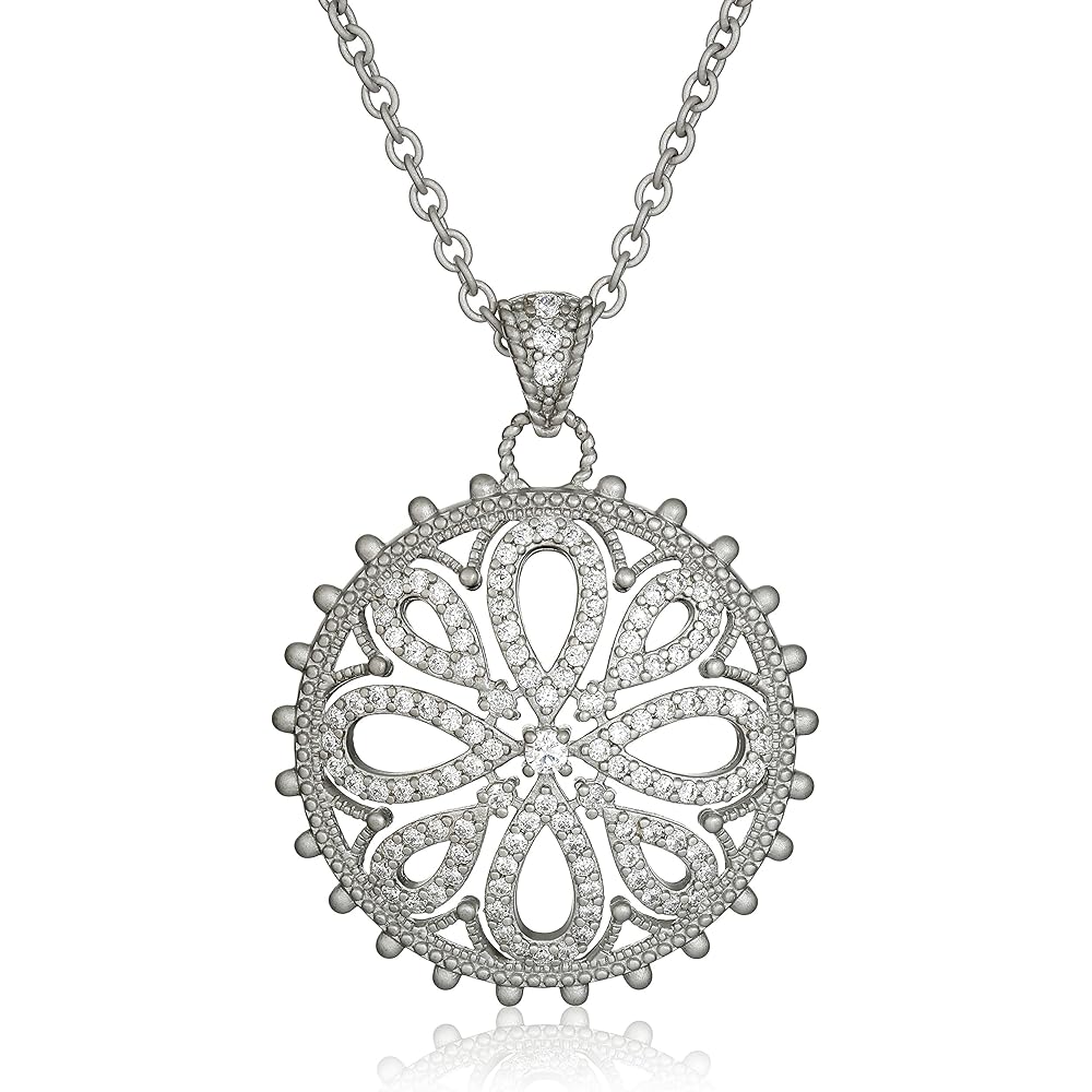 This Freida Rothman large love knot medallion pendant is a perfect pick of inspirational jewelry to add to any jewelry box. With its open work design and its round, disk shape, large medallion pendant is ideal for solo wear or for layering with other sterling silver pendants.