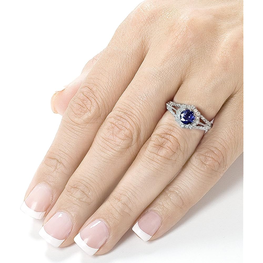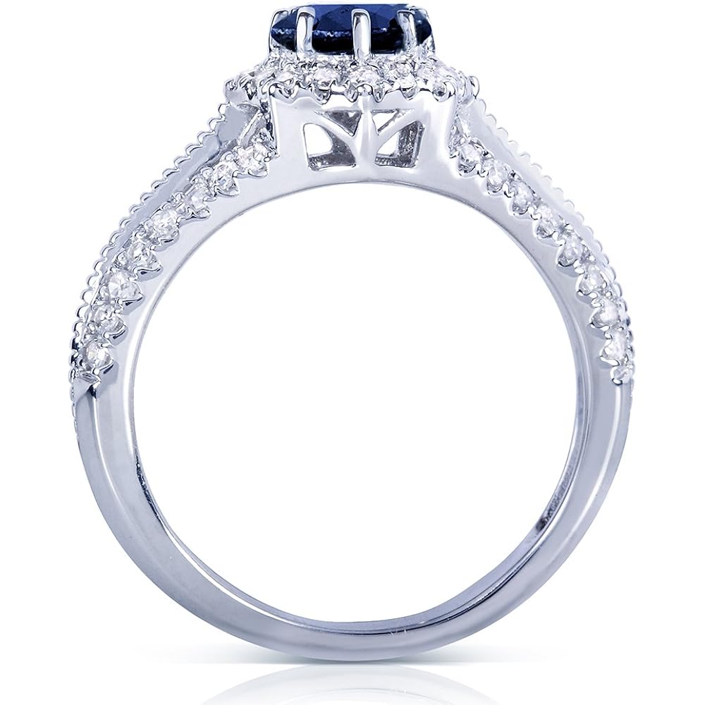 Talk about a stunner. It does not get better than this absolutely gorgeous 1 carat total weight of diamond and sapphire engagement ring by Kobelli. Made of lustrous 14K white gold, this fabulous engagement ring for women features a round blue sapphire accented by two rows of smaller round diamond halfway down the sides.