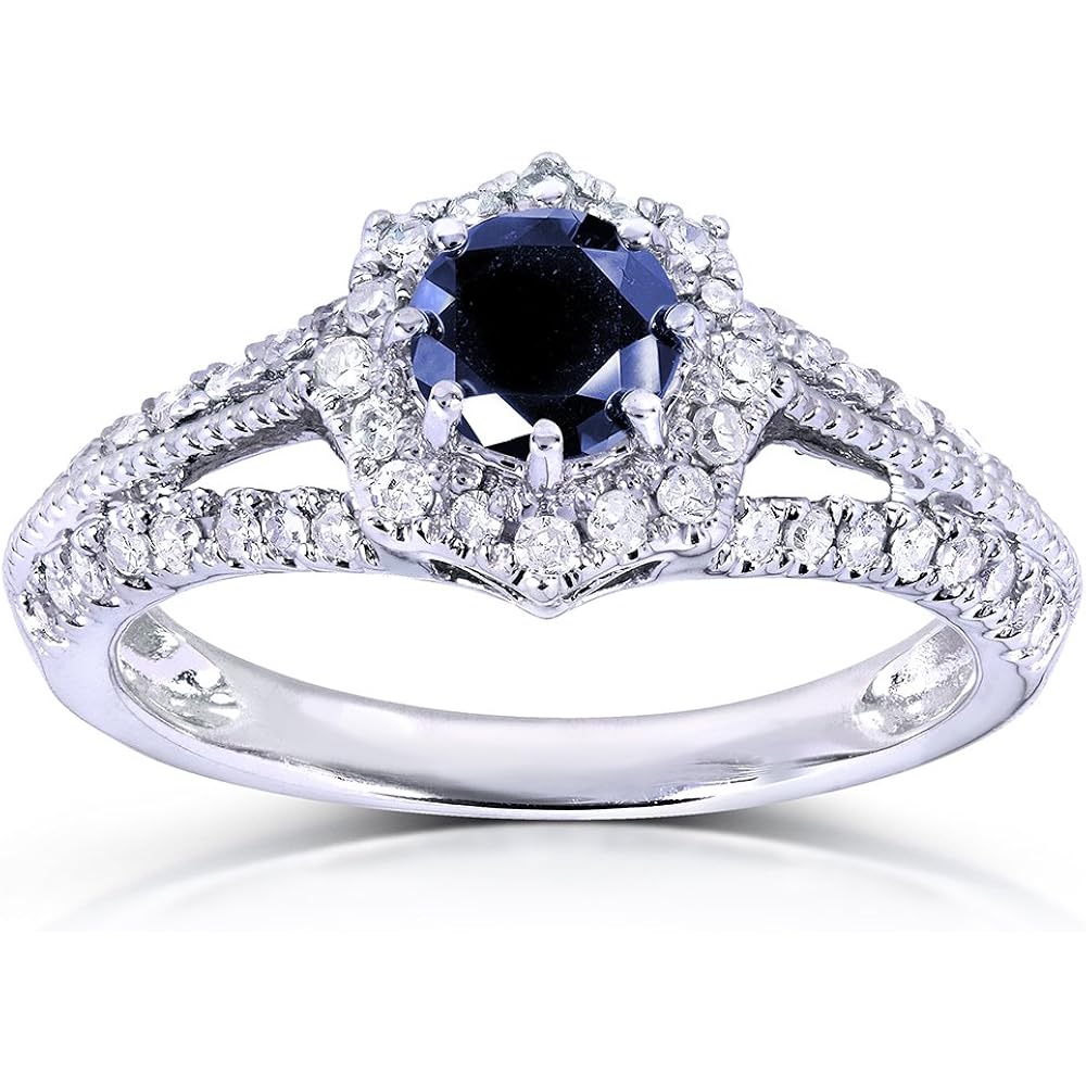 This Kobelli engagement ring is set with price for $528.00. Buy one of these gorgeous bridal rings and share her joy. Get this vintage-style round diamond and blue sapphire engagement ring today and you will not regret it.